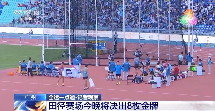 总台央视记者 杨威:我现在是在广东奥体中心体育场,这里也是十五运会开幕式的举办地。田径比赛是于昨天上午在这里开始进行。今天恰逢周末,非常多的观众来到现场观赛,上座率达到了8成左右。
