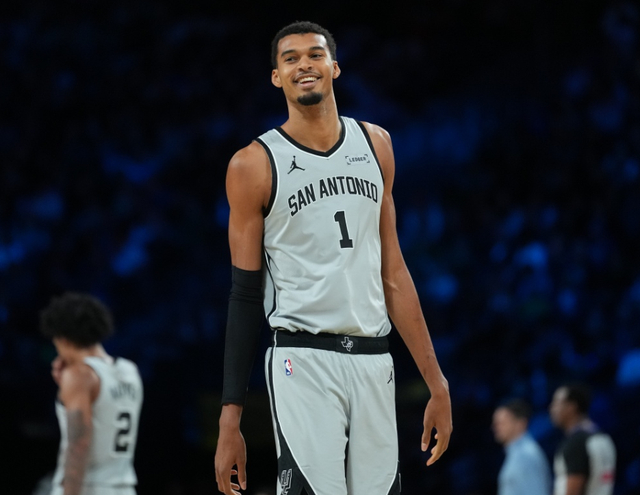 还有一位替补本场主宰了比赛,他就是文班亚马。作为伤愈复出的核心,最近几场比赛文班都是打替补。他仅仅打了21分钟而已,但全场15投10中,三分球3中2,以超高的效率轰下了26分12篮板3助攻2盖帽的华丽数据,正负值达到了+29,彻底打爆了老鹰队的内线。