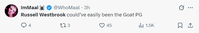 美记:威少原本有机会成为历史最佳控球后卫这一称号,GOAT PG。